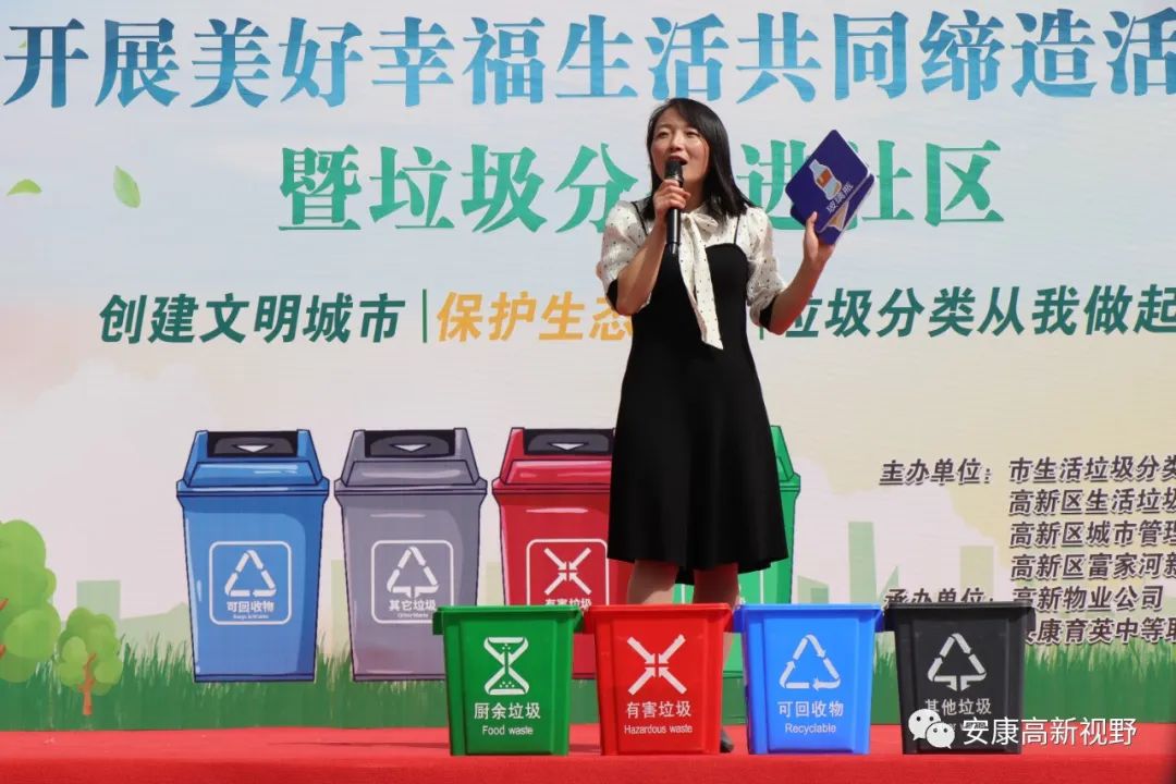 4月7日,由市生活垃圾分類辦、安康高新區(qū)城市管理執(zhí)法局、高新區(qū)生活垃圾分類辦和富家河新城黨委主辦,高新物業(yè)公司和安康育英中等職業(yè)學(xué)校承辦的“美好環(huán)境與幸福生活共同締造”暨生活垃圾分類宣傳進社區(qū)活動在富家河社區(qū)舉行。