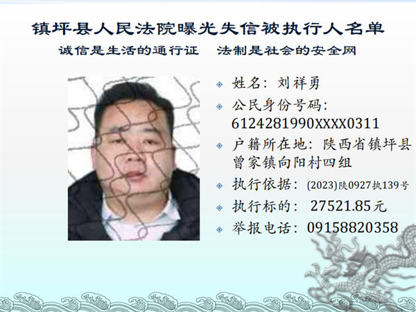 曝光失信 | 鎮(zhèn)坪法院2023年第三期失信人員名單公布