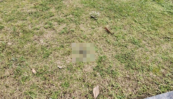11月8日 , 金州廣場綠化帶內有狗糞便未清理。(圖文/周薇)