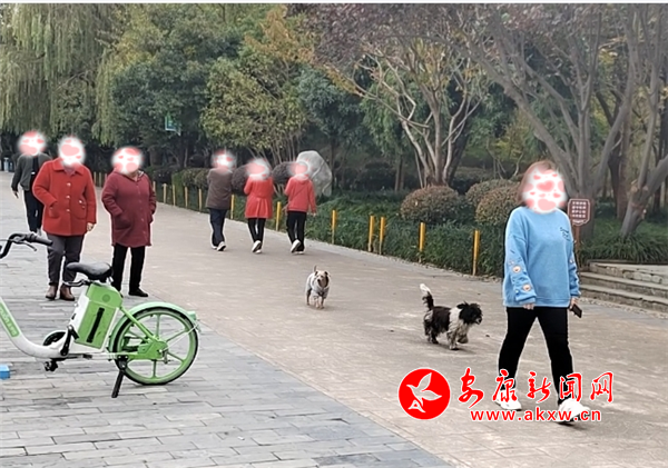 11月9日上午,漢江公園公園步道有市民遛狗未牽繩。(圖文/周薇)