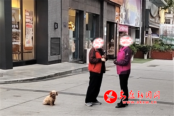 11月9日上午,大橋路鑫街口人行道上有市民遛狗不牽繩。(圖文/周薇)