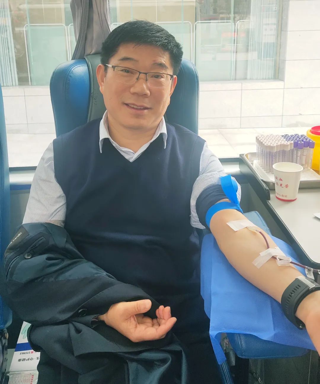 黨辦主任李子梅笑著說:“我一直想獻血,前幾次因為身體原因沒有獻成,還特別遺憾,這次檢測符合獻血標準后我特別高興,作為醫(yī)務(wù)工作者,能夠為無償獻血事業(yè)貢獻自己一份微薄的力量,這很有意義?!?/p>