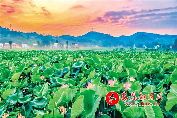 “嗚——”一聲汽笛長(zhǎng)鳴,我們?nèi)齻€(gè)不約而同地扭頭望去,一輛“清風(fēng)號(hào)”紅色小火車載著滿滿一車游人在荷塘間穿梭,車上的人一臉幸福自豪,盡享漫游的快樂(lè)。江南的荷塘里是采蓮的畫船,這里是奔馳的火車,倒也有趣。我的腦海里閃現(xiàn)一個(gè)念頭:既然有陜南,何必下江南??