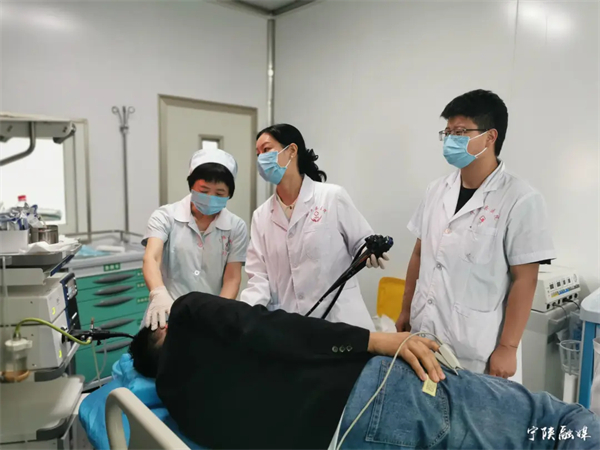 7月8日,走進(jìn)寧陜縣醫(yī)院內(nèi)鏡室,門(mén)外已有三、四名患者排隊(duì)。診室內(nèi),金壇區(qū)第一人民醫(yī)院消化內(nèi)科副主任醫(yī)師潘良正在為一名患者做胃鏡。檢查結(jié)束后,潘良詳細(xì)詢(xún)問(wèn)了患者的其他癥狀并開(kāi)出藥方,叮囑患者注意飲食,按時(shí)服藥。