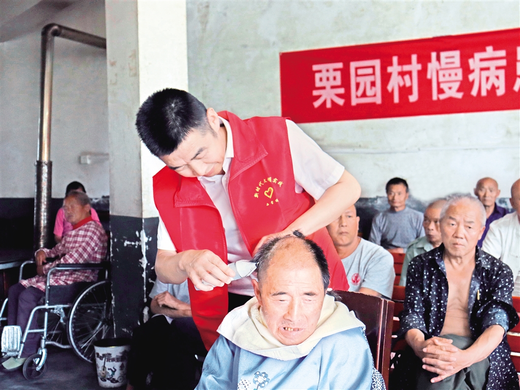 為弘揚中華民族“孝老、敬老、愛老”傳統(tǒng)美德,8月7日,白河縣西營鎮(zhèn)機關黨支部組織黨員來到西營鎮(zhèn)區(qū)域敬老院開展“弘揚孝義善舉 倡導文明鄉(xiāng)風”志愿服務活動。活動中,志愿者們?yōu)槔先藗兲峁┝烁啐g補貼認證、修剪指甲、打掃衛(wèi)生等志愿服務。(劉焱 胡曉華 攝)