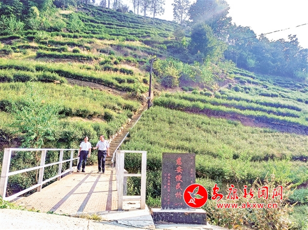 “十月有個小陽春,采點秋茶送親人?!庇锶张枺迕駨埑擅飨虿鑸@走去。當他在鋼架橋上與從茶山歸來的張成元相會,談起今年的茶葉收入時,不由得拍著橋頭的扶手感嘆道:“要感謝它呀!”