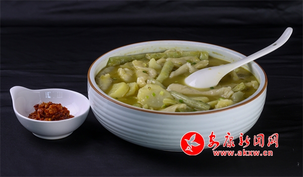 “甜酒火燒饃”,是石泉縣幾代人美食智慧的積累,傳承至今,是深受人們喜愛(ài)的小吃。它是采用古老傳統(tǒng)老酵面加甜酒發(fā)面,將老酵面、甜酒加入溫水后,再加入面粉一起攪拌均勻后再揉面。把面團(tuán)揉制光亮后放置幾小時(shí)待其自然發(fā)酵。等到面團(tuán)成發(fā)泡蜂窩狀態(tài),才可以開(kāi)始將面團(tuán)做成圓形,在用搟面杖搟薄圓形面團(tuán)放入柴火灶鍋中,撒上芝麻,小火炕制一面黃在翻面炕制兩面色澤金黃。吃進(jìn)嘴里有小麥淡淡的清香味,也有甜酒的甜香味,回味無(wú)窮。杜光發(fā)制作的這道小吃獲得安康市2024年“安康味道”名小吃。