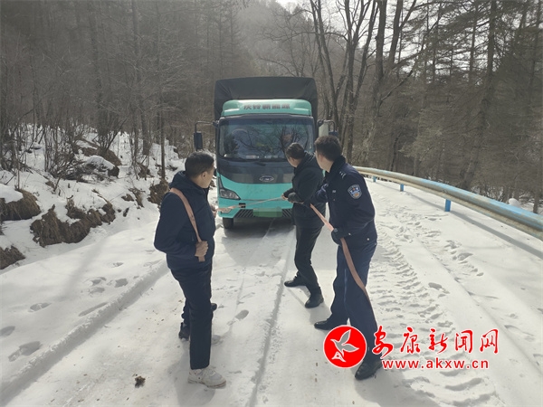 2月19日12時(shí)許,寧陜縣公安局龍王派出所值班民警接到救援電話:有一輛貨車駕駛到太山廟鎮(zhèn)太山村某路段被困,請(qǐng)求救助,接到電話后龍王派出所民輔警迅速趕往事發(fā)地。當(dāng)時(shí)大雪已經(jīng)下了一天,該路段因山路崎嶇坡陡,部分路面結(jié)冰打滑,民警克服天氣不利條件趕到現(xiàn)場(chǎng)。到現(xiàn)場(chǎng)后,民警看見一輛貨車被困在雪地中,民警查看現(xiàn)場(chǎng)環(huán)境后,利用攜帶鐵鍬、拖車?yán)K等救援物資迅速開展工作,經(jīng)過2個(gè)多小時(shí)終于安全將被困車輛牽引至安全區(qū)域。