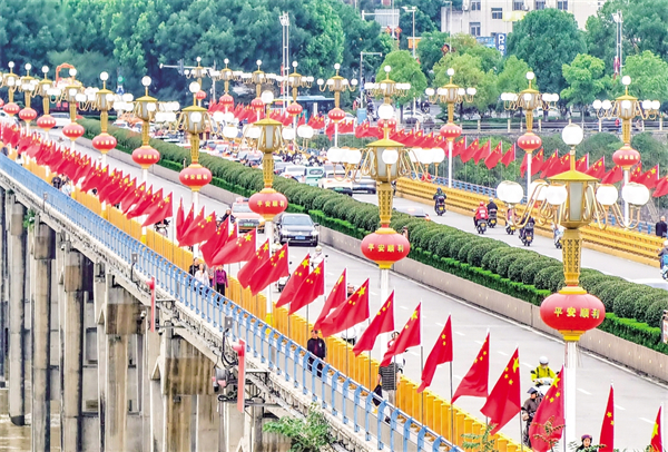 9月25日,我市市政部門對(duì)漢江一橋進(jìn)行了裝扮,以迎接即將到來的國(guó)慶節(jié)。?