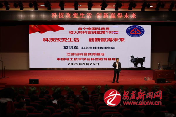 本網(wǎng)訊(通訊員 雷建民)為積極響應(yīng)國(guó)家首個(gè)“全國(guó)科普月”活動(dòng)號(hào)召,落實(shí)新修訂的《中華人民共和國(guó)科學(xué)技術(shù)普及法》精神,營(yíng)造校園崇尚科學(xué)、鼓勵(lì)創(chuàng)新的良好氛圍,借“組團(tuán)式”幫扶力量,9月26日,紫陽(yáng)中學(xué)特邀江蘇省科技傳播專家、常州市突出貢獻(xiàn)人才、中國(guó)電工技術(shù)學(xué)會(huì)科普教育基地負(fù)責(zé)人嵇明軍教授來(lái)校,開(kāi)展了一場(chǎng)別開(kāi)生面的科普講座活動(dòng)。