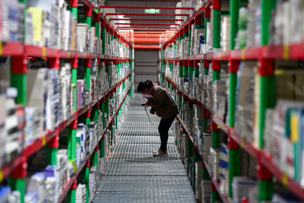 2025年2月19日,工作人員在泰安新聞出版小鎮(zhèn)圖書倉庫內(nèi)整理書籍。近年來,山東省泰安市立足出版印刷產(chǎn)業(yè)優(yōu)勢(shì),打造泰山新聞出版小鎮(zhèn),通過拉長壯大產(chǎn)業(yè)鏈,推動(dòng)產(chǎn)業(yè)集聚發(fā)展,構(gòu)建龍頭引領(lǐng)、鏈條延伸、集群共進(jìn)的出版印刷產(chǎn)業(yè)“雁陣”。目前,小鎮(zhèn)已吸引60余家企業(yè)入駐,涵蓋編輯出版、印刷發(fā)行、倉儲(chǔ)物流、版權(quán)交易、研學(xué)旅游等產(chǎn)業(yè)鏈各環(huán)節(jié)。