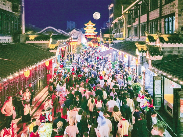 國慶期間,漢陰縣雙河口古鎮(zhèn)以“長安荔枝道,古韻雙河口”為主題,推出了一系列沉浸式文旅活動。 王建霞 攝