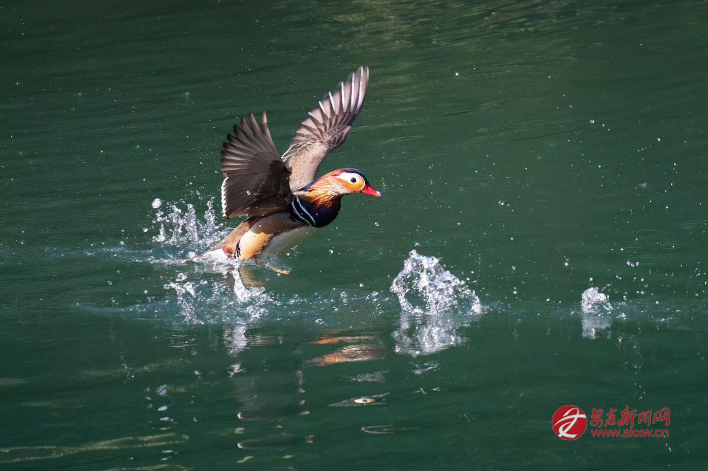 暖陽(yáng)下,鴛鴦三五成群,在水庫(kù)里游來(lái)游去,時(shí)而嬉鬧戲水,時(shí)而將頭探入水中啄食小魚,靈動(dòng)的身影在水面漾開層層漣漪。