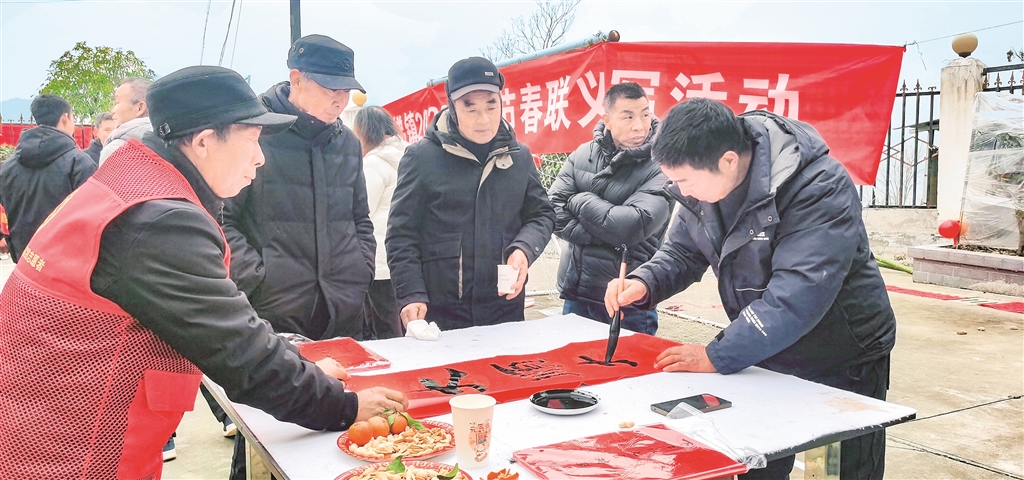 “‘村晚’既注重豐富群眾的文化生活,也著力帶動村民增收?!睏羁艽灏?lián)干部、石梯鎮(zhèn)農(nóng)村農(nóng)業(yè)中心主任王化澎介紹了活動的初衷。現(xiàn)場設置的送春聯(lián)區(qū),書法愛好者揮毫潑墨,一副副對聯(lián)、一個個“福”字被村民欣喜接過;就業(yè)推薦區(qū)前,大家認真查看《漢濱區(qū)2026年用工單位招聘崗位需求表》,挑選心儀崗位;農(nóng)副產(chǎn)品展銷區(qū),農(nóng)家自產(chǎn)的紅薯、蔬菜,自制的豆腐乳、醪糟、變蛋等,吸引了眾多來自安康中心城區(qū)的市民爭相搶購。