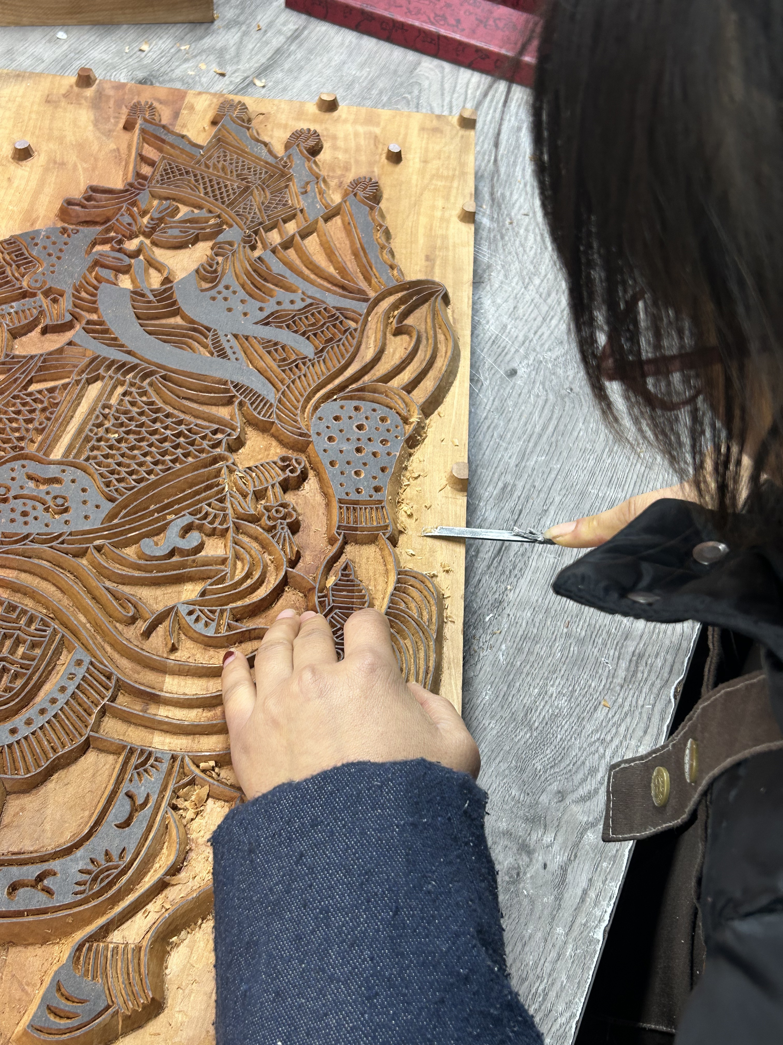 “版畫媽媽”正在雕版 記者 朱潔 攝