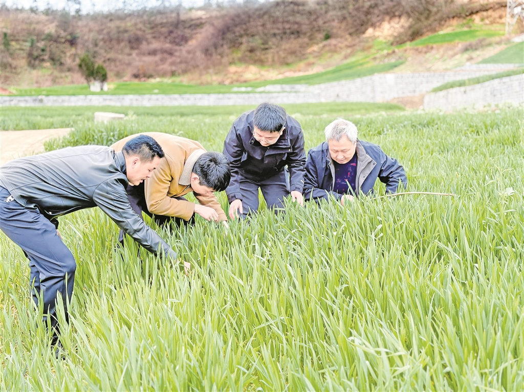 “這塊墑情不錯,但那邊靠坡的地有點干,施肥得區(qū)別對待。”2月24日,漢濱區(qū)農(nóng)業(yè)農(nóng)村局聯(lián)合相關(guān)部門組建技術(shù)服務(wù)隊,分赴各糧食生產(chǎn)重點鎮(zhèn)。汪德義帶著隊員們逐塊田排查,建立管理臺賬,針對不同苗情、墑情精準開具“個性化處方”。農(nóng)戶圍在他身邊,聽得認真,問得仔細。