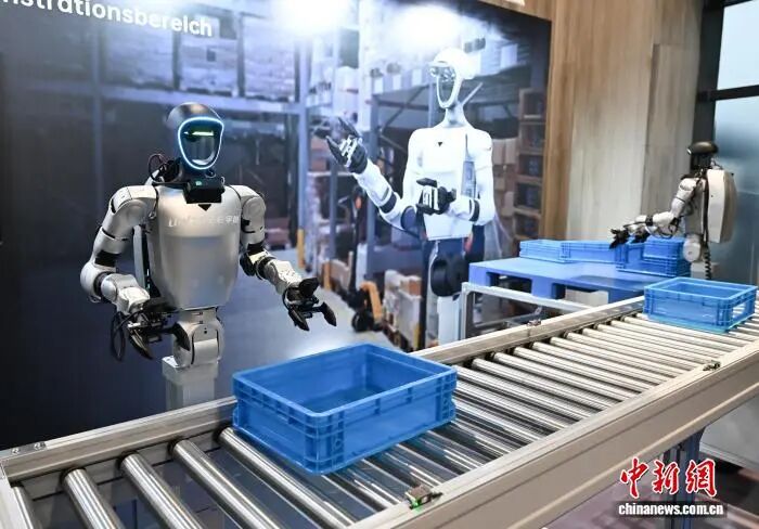 資料圖:宇樹(shù)科技人形機(jī)器人模擬流水線生產(chǎn)場(chǎng)景。中新社記者 王剛 攝