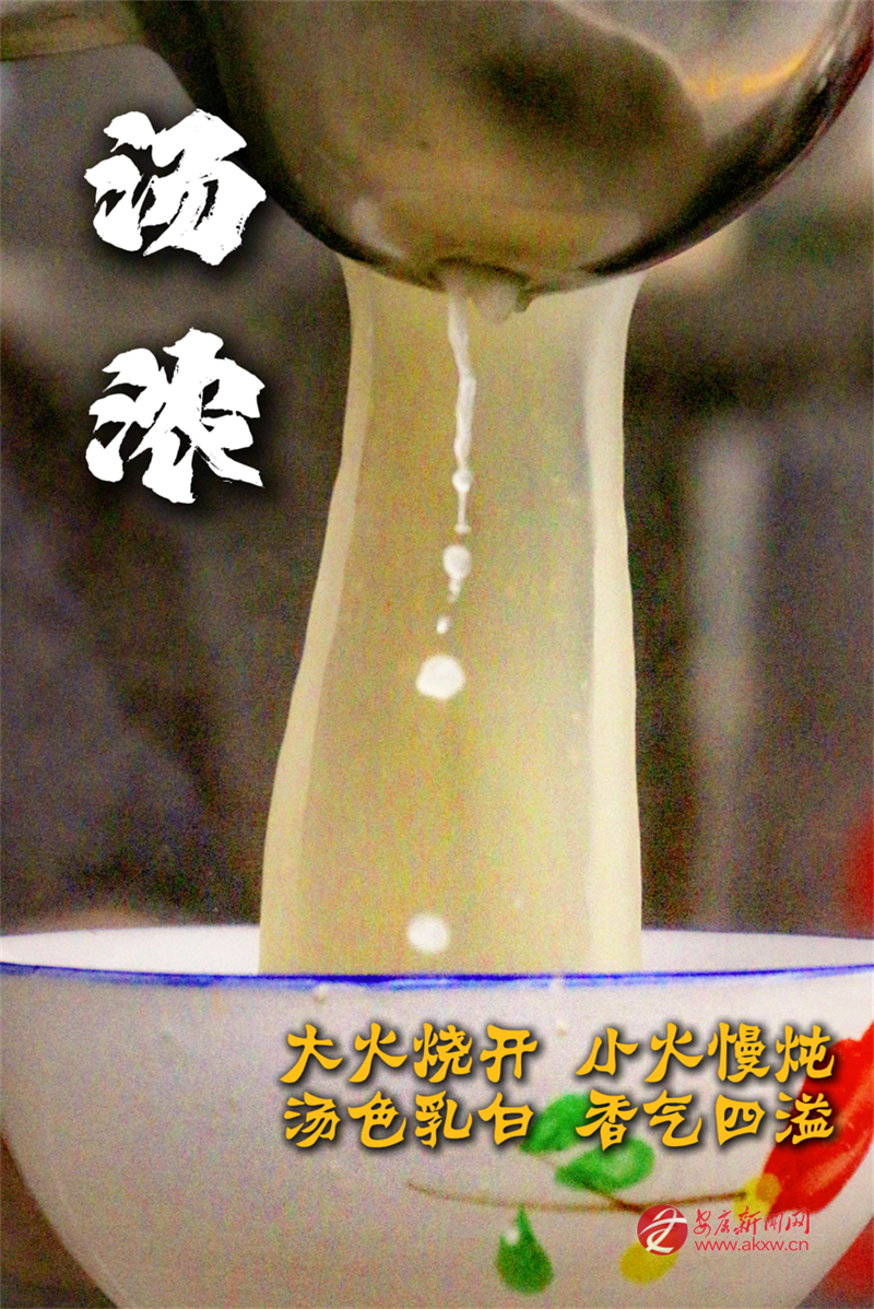 店家頭天夜里便將羊肉、羊骨、羊雜一同下鍋,佐以花椒、八角、草果、姜片,大火燒開(kāi),小火慢燉。幾個(gè)小時(shí)下來(lái),湯色乳白,香氣四溢。