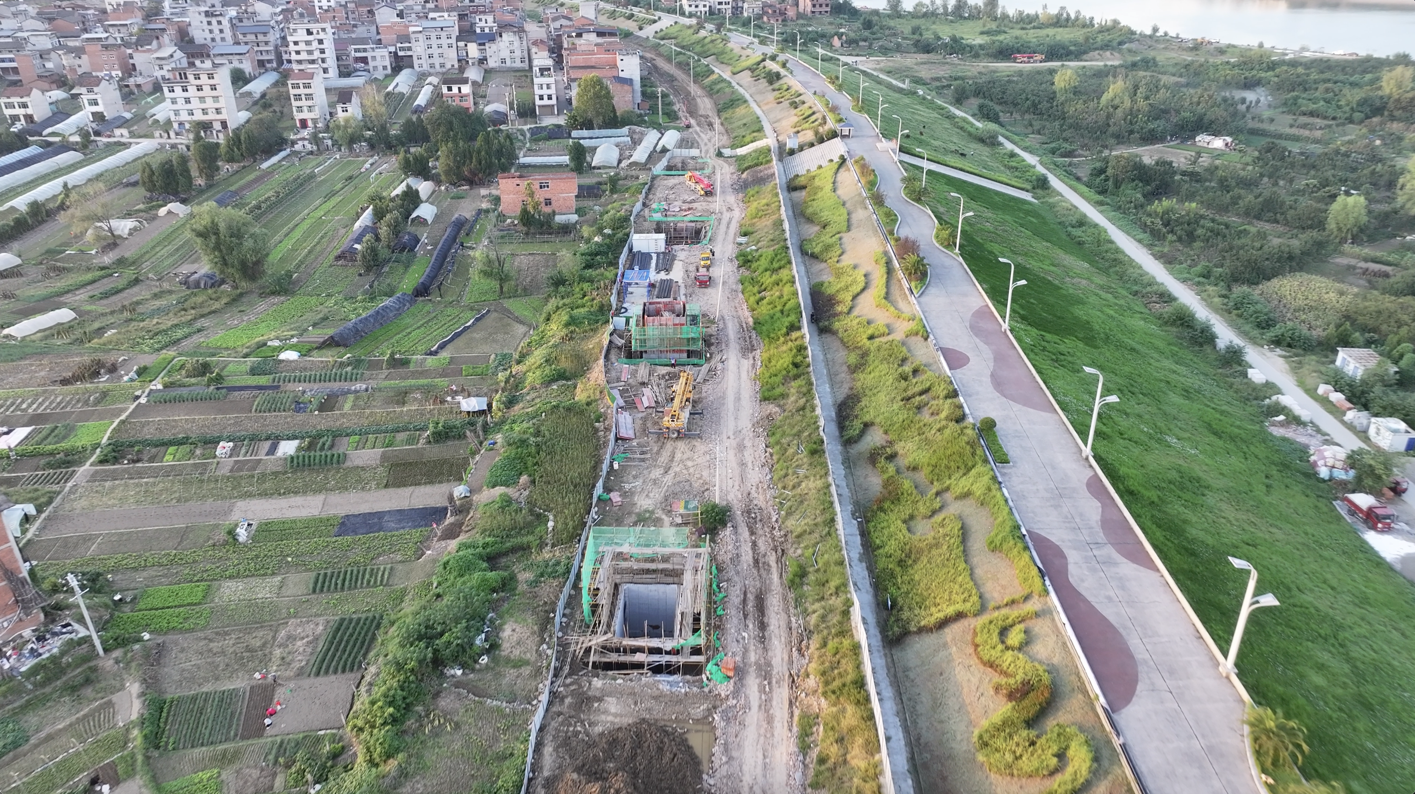 當(dāng)前,各關(guān)鍵節(jié)點工程穩(wěn)步推進(jìn)??芗覝掀瑓^(qū)已完成污水管道2600米、擋墻475米、箱涵10米、道路破除及恢復(fù)5200平方米、箱涵清淤270米;東壩白廟片區(qū)污水管道全線貫通,新建單日消納3300立方米污水提升泵站1座,雨水頂管施工完成100米、明開挖完成150米。