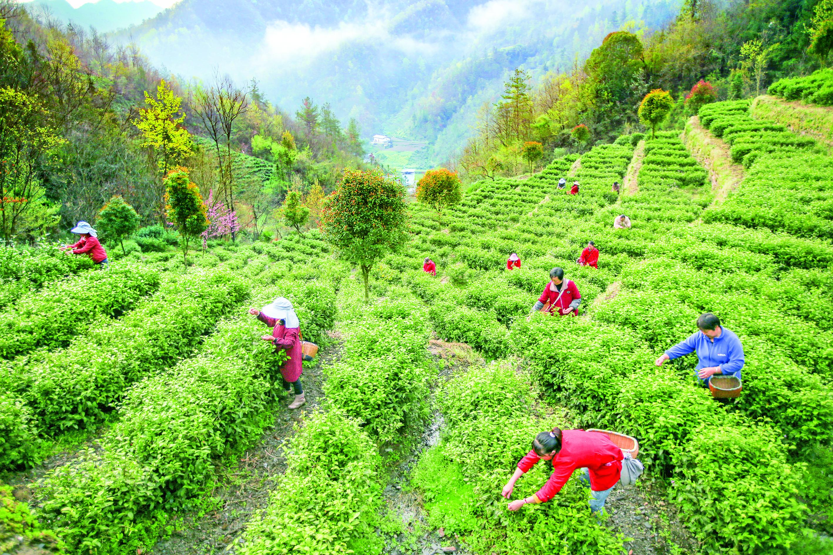 時下正值采茶高峰期,在白河縣宋家鎮(zhèn)雙喜村茶園內,茶農們正搶抓農時采摘春茶。據(jù)了解,今年該村春茶產量有所提高、質量也更優(yōu)良,預計整個春茶采摘期持續(xù)1個月,全村今年春茶預計產量為20余萬斤,產值約6000萬元。  趙久剛 攝