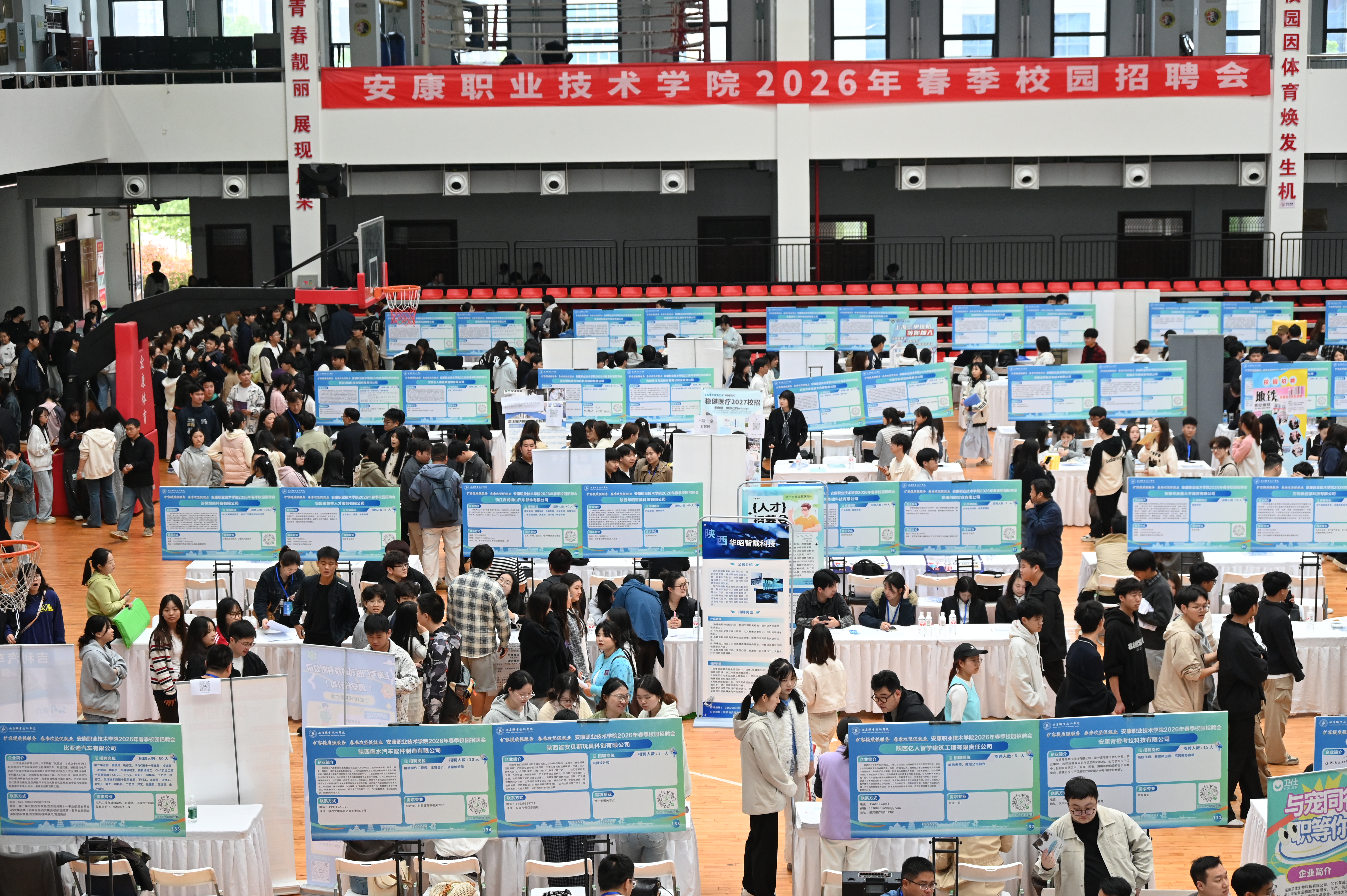 4月10日,由安康市人社局與安康職業(yè)技術(shù)學(xué)院聯(lián)合舉辦的“2026年春季校園招聘會(huì)”,在學(xué)院體育館落幕。本次招聘會(huì)吸引170家企業(yè)參會(huì),提供崗位6023個(gè),到場(chǎng)學(xué)生4000余人。