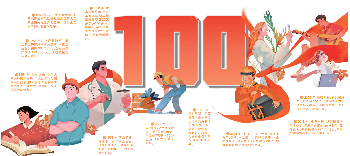 2025年,是全國總工會成立100周年,作為工人階級和廣大勞動群眾的堅強(qiáng)后盾,全國總工會為我國的社會進(jìn)步和經(jīng)濟(jì)發(fā)展做出了不可磨滅的貢獻(xiàn)。安康工運(yùn)事業(yè)從1925年漢水畔第一聲“勞工萬歲”的吶喊,到深度參與三線建設(shè)、脫貧攻堅、生態(tài)經(jīng)濟(jì)等重大戰(zhàn)略,再到新時代百萬職工投身幸福安康建設(shè)的鏗鏘步履,始終與黨的事業(yè)血脈相連,與城市發(fā)展同向同行。