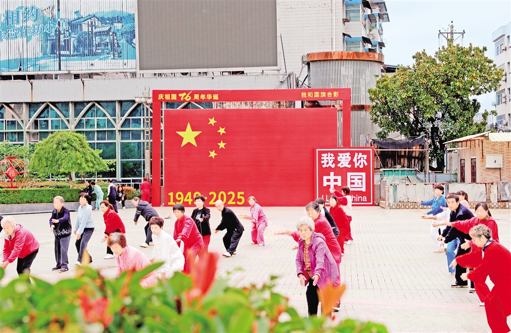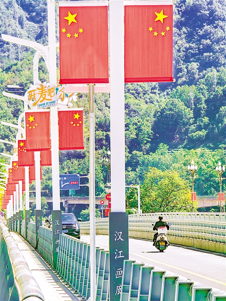 紫陽城區(qū)的街頭巷尾,一面面鮮艷的五星紅旗迎風(fēng)招展,處處洋溢著祥和的節(jié)日氛圍。