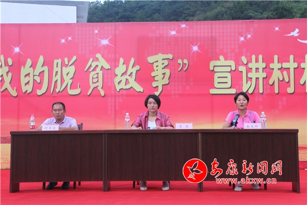 平利縣長(zhǎng)安鎮(zhèn)黨委副書記、駐金沙河村工作隊(duì)隊(duì)長(zhǎng)吳琴,講述了她帶領(lǐng)扶貧工作隊(duì)在金沙河村,通過道德評(píng)議樹“榜樣”治“懶病”的故事,她說:“思想的貧困是貧困的根源,提振志氣、增強(qiáng)信心,重塑對(duì)生活的希望是從根源消除貧困的必備良方。”白河縣倉上鎮(zhèn)裴家村致富能手柯昌全,講述了他自身是如何從“二混子”轉(zhuǎn)變成“自強(qiáng)標(biāo)兵”的歷程,他還勸誡鄉(xiāng)親們說:“貧困不可怕,只要有志氣、有信心,不等不靠,一定會(huì)擺脫貧困,過上幸福美滿的生活。”旬陽縣婦聯(lián)干部、駐城關(guān)鎮(zhèn)李家坪村第一書記南文珍用真切的話語,講述了自己三年來的駐村扶貧工作經(jīng)歷,用一個(gè)個(gè)感人的故事,體現(xiàn)了基層扶貧干部為脫貧攻堅(jiān)付出的艱辛努力。