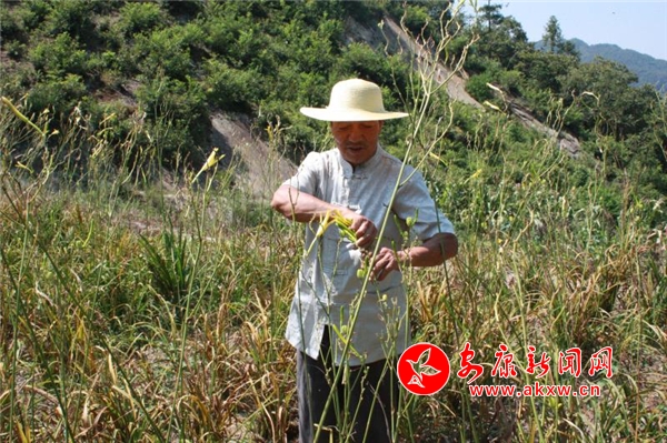 邊介紹著趙德友轉身拿來草帽,引著記者前往“讓他高興”的一畝二分地黃花地,邊走邊說:“今年黃花菜還沒有進入豐產(chǎn)期,所以自家也種了玉米、花生等作物,有時候也忙不過來,我和老伴兒呢,早上4點多就起床,不到5點就打著手電到地里除雜草、防蟲。想著明年才能到豐產(chǎn)期,也就沒怎么施肥,但沒想到今年6月開始黃花盛開,想著老兩口就能摘得過來,沒想到了后來不得不找鄰居幫忙摘花。”