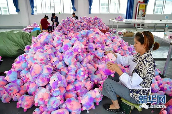 地處秦巴山區(qū)腹地的安康市是集中連片特困地區(qū)。通過近年來(lái)大力實(shí)施移民搬遷,安康市先后使近百萬(wàn)人口告別深山、搬進(jìn)集中安置社區(qū)的新居。過去分散的村民不斷聚集轉(zhuǎn)變?yōu)樾滦娃r(nóng)村社區(qū)居民,這使毛絨玩具等勞動(dòng)密集型產(chǎn)業(yè)有了適合發(fā)展的土壤。