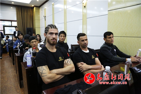 稱重儀式上,來自國際一線賽事執(zhí)裁團隊向所有參賽拳手詳細介紹本次賽事規(guī)則及禁忌。隨后,來自各國拳手依次走向稱重臺,接受賽前檢驗的同時,也向現(xiàn)場的媒體和嘉賓盡情的展示自己強健的體魄和健壯的肌肉輪廓,惹來現(xiàn)場陣陣沸騰。尤其在拳手對視環(huán)節(jié),雙方對陣拳手摩拳擦掌,怒目相視,劍拔弩張,現(xiàn)場火藥味十足。稱重儀式作為搏擊比賽的重要組成部分,是對陣雙方在賽前第一次正式碰面,也是雙方在氣場上一次強有力的交鋒。本次賽事是共邀請“一帶一路”沿線7個國家14名拳手參加角逐,共設置2場墊場賽、7場正賽,級別涉及57至73公斤級別。