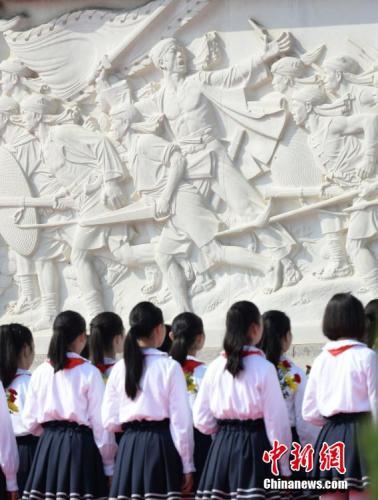 資料圖:少先隊員瞻仰人民英雄紀念碑。 中新社記者 廖攀 攝