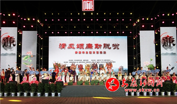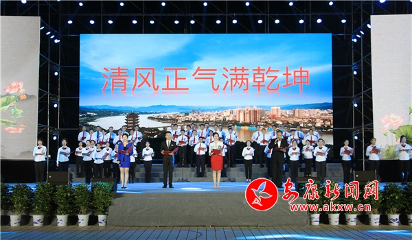 金秋時(shí)節(jié)的金州廣場,人潮如涌。“要讓清風(fēng)吹大地,要讓正氣滿人寰······” 本次文藝展演在氣勢磅礴的《唱響正氣歌》大合唱中拉開序幕。整臺展演緊緊圍繞“清風(fēng)頌廉助脫貧”主題,分揚(yáng)清風(fēng)、頌廉風(fēng)、塑民風(fēng)三個(gè)篇章,共演出合唱、漢劇、歌舞、小品、詩朗誦、民歌小戲、沙畫等藝術(shù)形式的節(jié)目14個(gè),其中絕大多數(shù)為市縣區(qū)紀(jì)委監(jiān)委、文旅局、脫貧辦組織新創(chuàng)作的精品節(jié)目!渡忛_盛世》《你是一縷清風(fēng)》《好久沒到這方來》等歌舞表演美輪美奐、震撼人心;《鑰匙與心鎖》《缺啥扶啥》等小品緊貼脫貧攻堅(jiān)主題和農(nóng)村百姓生活,生動(dòng)活潑、妙趣橫生;詩朗誦《清風(fēng)正氣滿乾坤》和情景講述《忠誠干凈擔(dān)當(dāng)》等節(jié)目展示了紀(jì)檢監(jiān)察干部的無私奉獻(xiàn)和擔(dān)當(dāng)作為;收尾的大型漢劇《清風(fēng)頌廉助脫貧》,將展演活動(dòng)推向高潮。近兩個(gè)小時(shí)的演出精彩紛呈,贏得陣陣掌聲,使觀眾品味到廉政文化精神大餐。在展演現(xiàn)場同時(shí)舉辦的主題圖片展,圍繞決戰(zhàn)貧困、攻堅(jiān)先鋒、警鐘長鳴等內(nèi)容,設(shè)置了30余塊展板,吸引過往群眾紛紛駐足觀看。
