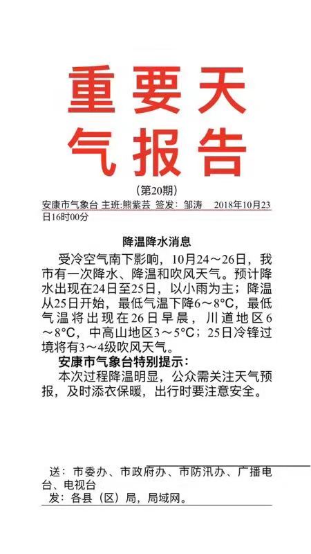 溫馨提示:本次降溫明顯,公眾需關(guān)注天氣預(yù)報(bào),及時(shí)添衣保暖,注意出行完全!iQL安康新聞網(wǎng)