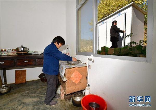 10月29日,漢濱區(qū)茨溝鎮(zhèn)西溝村村民焦南玉(左)在重建的輕鋼裝配式房屋內(nèi)整理蔬菜,屋外配有沖水式廁所。 新華社記者邵瑞攝53L安康新聞網(wǎng)