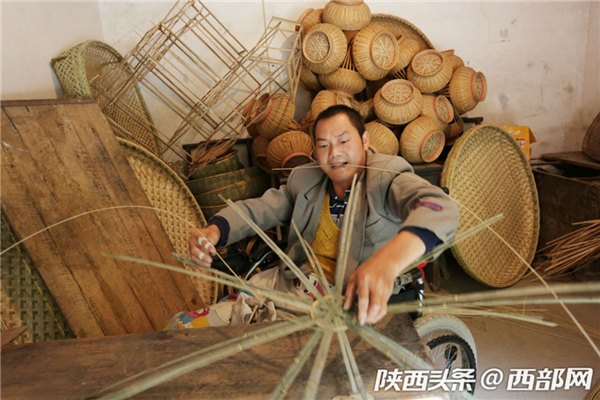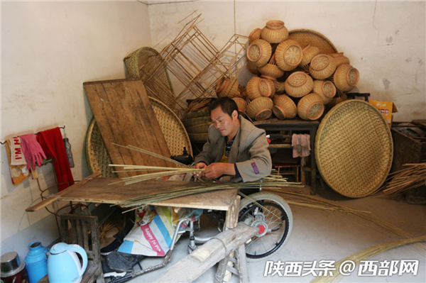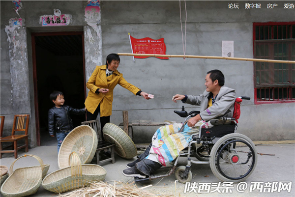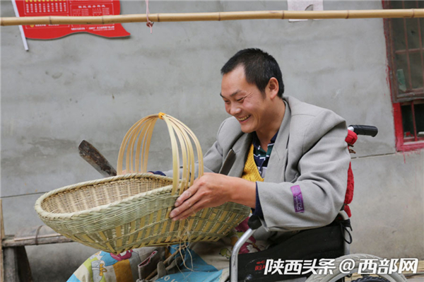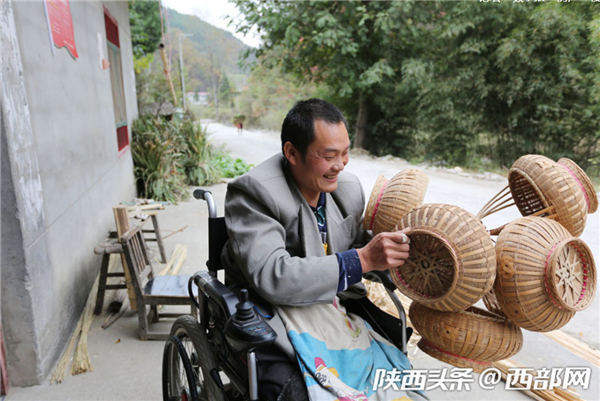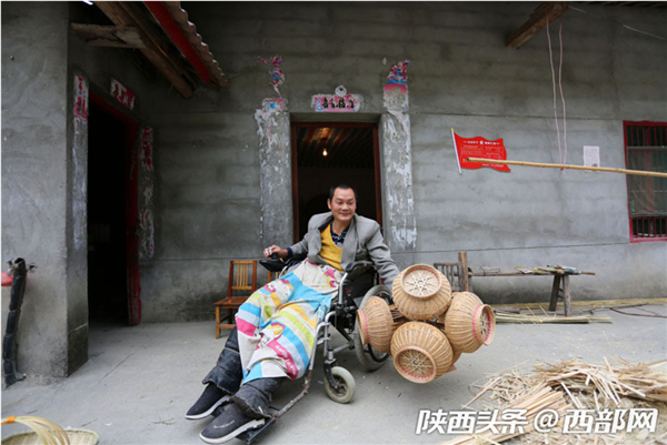 西部網(wǎng)訊(記者 魏永賢)安康旬陽(yáng)縣紅軍鎮(zhèn)莊院村,是一個(gè)秦嶺大山里的小村莊,今年40歲的黃忠旺20年前在山西清水一鐵礦遭遇礦難后,就再也走不出這個(gè)小山村了。高位截癱坐在輪椅上的黃忠旺自學(xué)篾匠,靠編織日用竹制品,獨(dú)自一人將兒子從1歲供養(yǎng)到上大學(xué),成了當(dāng)?shù)氐牡赖履7稑?biāo)兵及脫貧攻堅(jiān)自強(qiáng)自立標(biāo)兵。