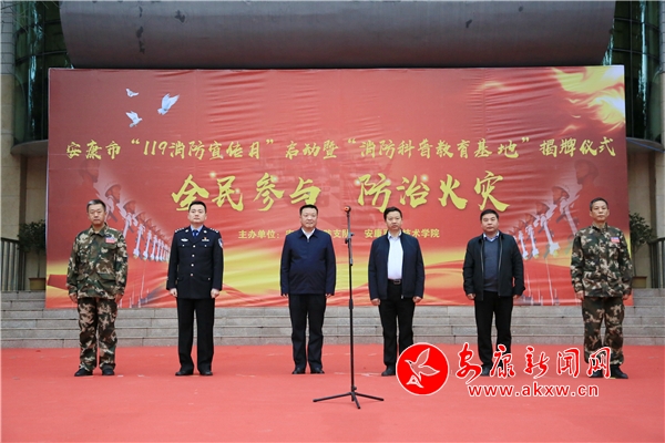 安康新聞網(wǎng)訊(通訊員 劉紀(jì)麟 莊濤)11月6日下午,安康市2018年“全民參與、防治火災(zāi)”消防宣傳月活動暨“消防宣傳科普教育基地”揭牌儀式在安康職業(yè)技術(shù)學(xué)院舉行,副市長、市消安委主任楊尚偉出席并宣布活動啟動。市消安委辦公室主任、市公安局副局長周斌等出席啟動儀式。