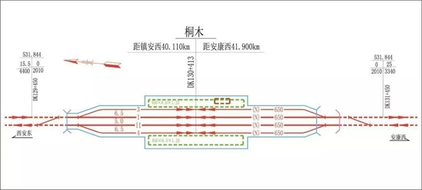 桐木站位于旬陽縣桐木鎮(zhèn)西北約 1.6km 處三溝交匯處,車站近期按越行站設(shè)計,主要辦理旅客列車的越行作業(yè),遠期預(yù)留辦理客運條件。