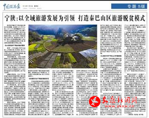1月5日,《中國旅游報(bào)》用一個(gè)整版推廣了寧陜創(chuàng)新秦巴山區(qū)旅游脫貧的工作經(jīng)驗(yàn)。1月18日,國家旅游局、國務(wù)院扶貧辦在四川涼山自治州召開全國旅游扶貧工作會,將寧陜縣《堅(jiān)持全域旅游發(fā)展為引領(lǐng),創(chuàng)新秦巴山區(qū)旅游脫貧模式》作為七大旅游扶貧典型案例面向全國推廣。