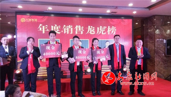萬家在2018年交出了一份滿意的答卷,離不開每一位員工的辛勤耕耘!領(lǐng)導(dǎo)致辭結(jié)束后,公司領(lǐng)導(dǎo)分別為年度優(yōu)秀個人獲獎?wù)、年度銷售前三名個人獲獎?wù)咭约澳甓蠕N售冠軍團隊頒發(fā)了獎金、獎杯、榮譽證書等獎品,以資鼓勵。