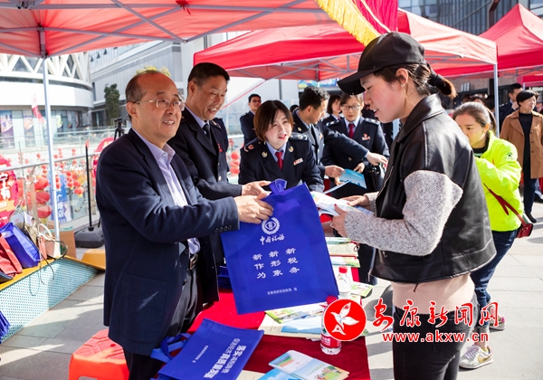 本網(wǎng)訊 (通訊員 付明明)春風(fēng)潤(rùn)4月,花香襲人來。伴著濃濃的春色,全國(guó)第28個(gè)稅收宣傳月如期而至。4月1日上午,安康高新區(qū)天一城市廣場(chǎng)門前人頭攢動(dòng),新搭建的臨時(shí)展臺(tái)讓人圍得水泄不通。一幅幅印有減稅降費(fèi)宣傳口號(hào)的標(biāo)語(yǔ)在商廈高大的墻體上奪目呈現(xiàn)的同時(shí),在另一端的LED屏幕上滾動(dòng)閃爍著。隨著市稅務(wù)局和高新區(qū)管委會(huì)負(fù)責(zé)人及民營(yíng)和小微企業(yè)代表共同轉(zhuǎn)動(dòng)橙色水晶球,標(biāo)志著全國(guó)第28個(gè)稅收宣傳月活動(dòng)在安康正式拉開序幕。