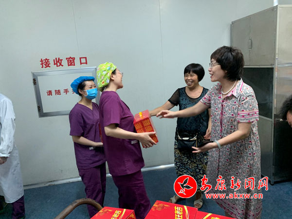8月2日上午,醫(yī)院紀(jì)委書記杜海云、工會(huì)主席王小麗、門診部主任馬吉香一行三人帶著院領(lǐng)導(dǎo)的深切關(guān)懷,深入到醫(yī)療一線的各科門診、后勤一線的門衛(wèi)崗?fù)ぁ㈠仩t房、消毒供應(yīng)中心等高溫部門以及高新醫(yī)院、傳染病院和精神病院,開(kāi)展“夏日送清涼”活動(dòng)。