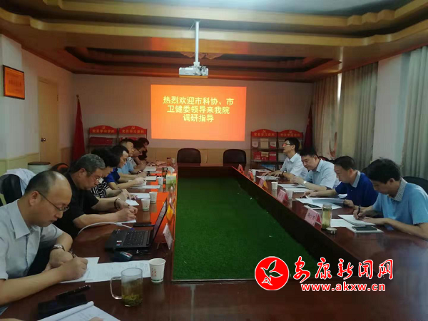 本網(wǎng)訊 為夯實(shí)全市醫(yī)學(xué)會(huì)及各分會(huì)發(fā)展協(xié)作工作,8月2日,安康市科協(xié)黨組書(shū)記、主席謝康,市科協(xié)黨組成員、秘書(shū)長(zhǎng)葉榮斌、安康市衛(wèi)健委副主任楊彬、安康市保健辦主任陳少甫一行前往安康市中心醫(yī)院調(diào)研指導(dǎo)院士工作站、醫(yī)學(xué)會(huì)改選等工作開(kāi)展情況,醫(yī)院黨委書(shū)記王曉春、黨委副書(shū)記、院長(zhǎng)茹甫毅陪同調(diào)研。