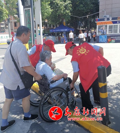 活動(dòng)中,志愿者們頭頂炎炎烈日,堅(jiān)守在十字路口的的八個(gè)拐角,身穿紅馬甲,手舉“為您文明行為點(diǎn)贊”標(biāo)識(shí)牌,對(duì)騎摩托車(chē)未帶頭盔、行人闖紅燈、不走斑馬線亂穿馬路等不文明行為主動(dòng)上前勸導(dǎo)制止。對(duì)通過(guò)路口行動(dòng)不便的老人、小孩、殘疾人等需要幫助的人群,主動(dòng)攙扶,扮演安全護(hù)駕使者,護(hù)送他們安全通過(guò)路口,善意舉動(dòng)贏得了過(guò)往車(chē)輛駕駛員的理解與讓行,更贏得了路過(guò)市民群眾頷首贊許。