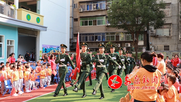 活動(dòng)在武警戰(zhàn)士們莊嚴(yán)的升旗儀式中拉開(kāi)序幕,雄壯嘹亮的中華人民共和國(guó)國(guó)歌響起,威武整齊的武警戰(zhàn)士護(hù)衛(wèi)著鮮艷的五星紅旗,邁著整齊有力的步伐,國(guó)旗在燦爛的陽(yáng)光中冉冉升起,武警戰(zhàn)士莊嚴(yán)敬禮,老師們和小朋友都立正肅立,共同感受這莊嚴(yán)的時(shí)刻。