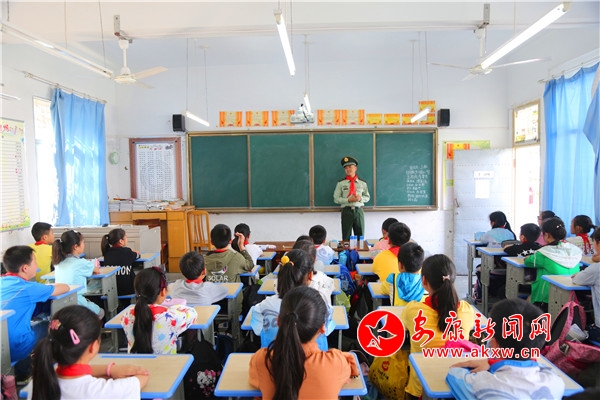 授課結(jié)束后,官兵們便開始與孩子們開展互動活動,少先隊員為支隊領(lǐng)導(dǎo)戴上了鮮艷的紅領(lǐng)巾,官兵們展示了擒敵拳,為孩子們送來文體器材和每人一份的學(xué)習(xí)用品。并通過猜謎語、玩游戲、學(xué)唱歌、講故事等形式,讓孩子們了解軍隊、走近軍人。