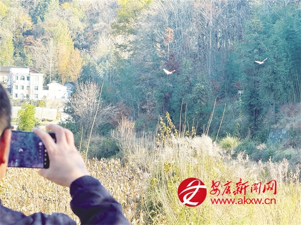 翩翩飛舞的朱鹮引得游人駐足