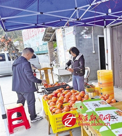 游客在城關(guān)鎮(zhèn)絲銀壩村選購(gòu)柿子