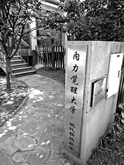 在一樓通往二樓的樓梯拐角處,能清楚地看到內(nèi)力覺醒大學精品私塾辦學模式的牌子“軍事化管理、一束花教育、自主式學習、艱苦化生活、淘汰式選擇、歷史化熏陶、百家式講課、行走化風格、個性化發(fā)展、合并式內(nèi)容”。文/本報記者 林艷 武文娟