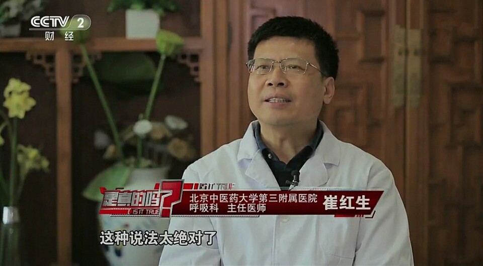 北京中醫(yī)藥大學(xué)第三附屬醫(yī)院呼吸科主任醫(yī)師崔紅生表示:“這種說法太絕對(duì)了,是假的!